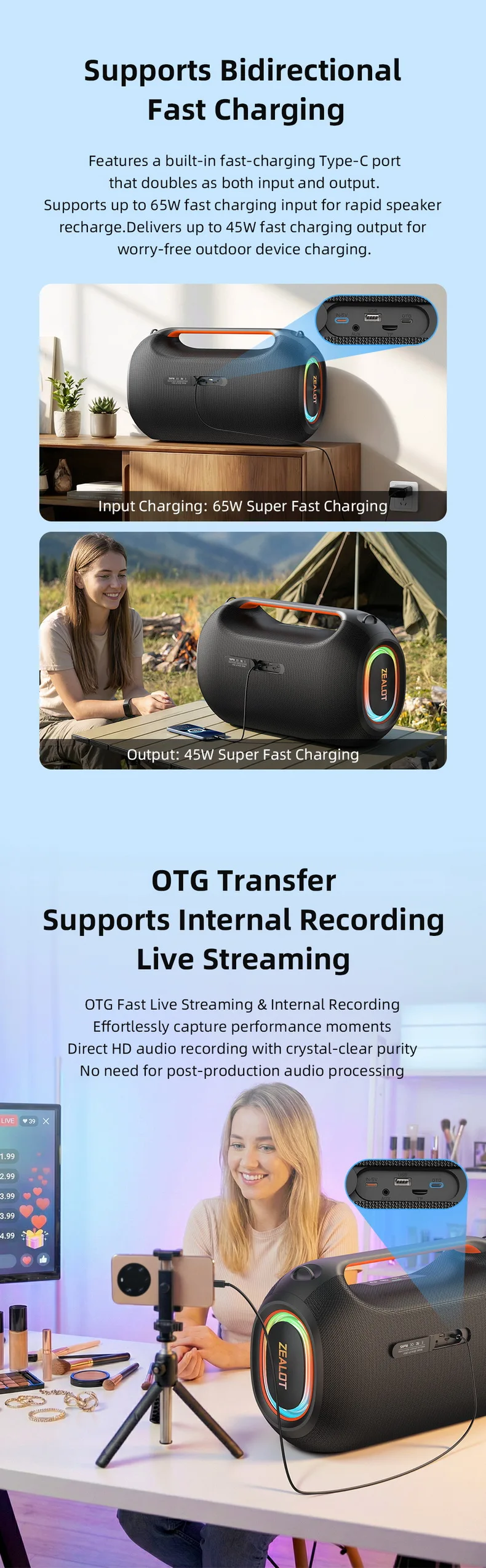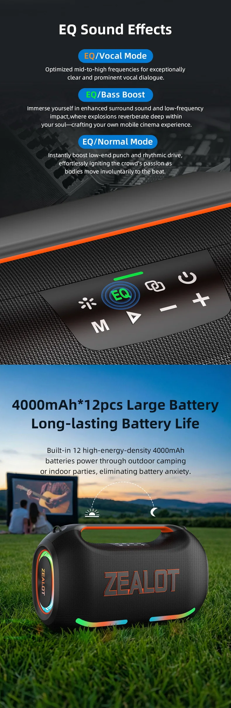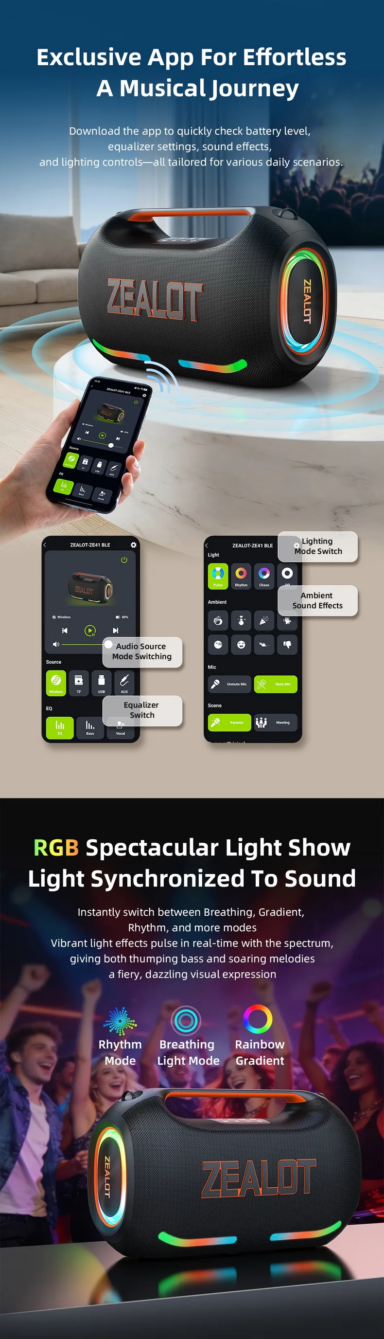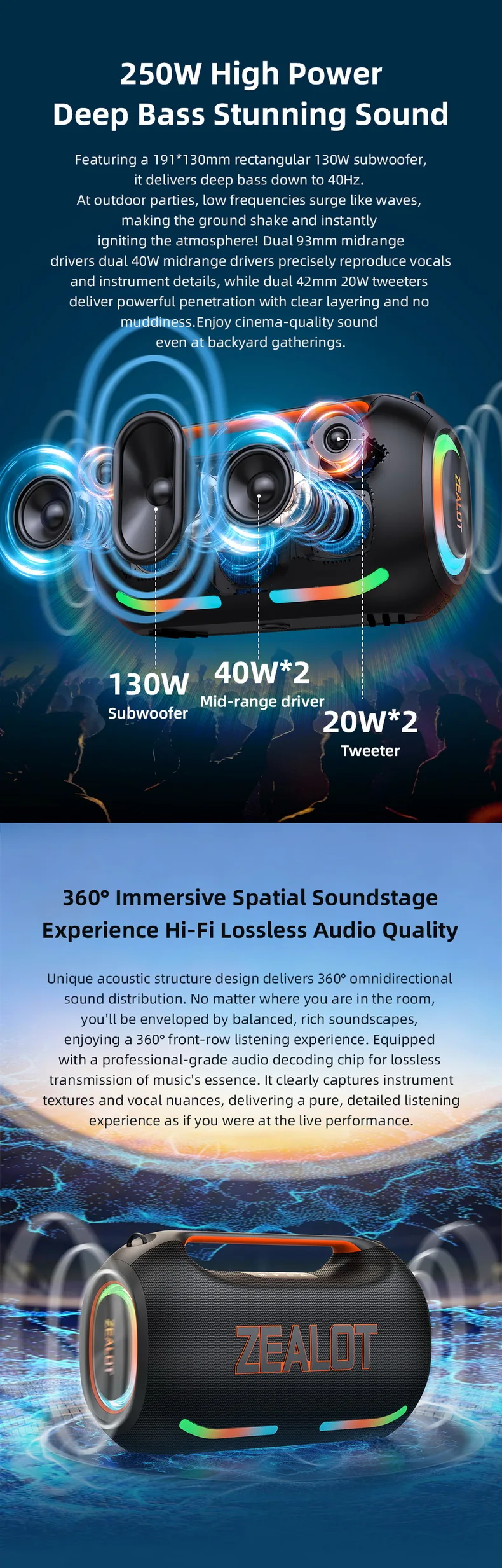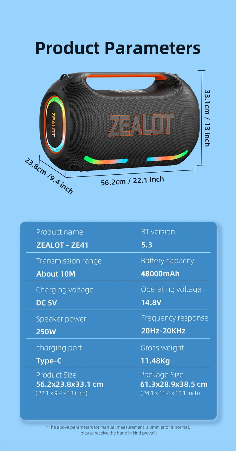 【🎁Clearance price🎁】Latest Original Zealot ZE41 250W Portable Outdoor Party Speaker Wireless Speaker 48000mAh Battery APP Control RGB LED BT Speaker