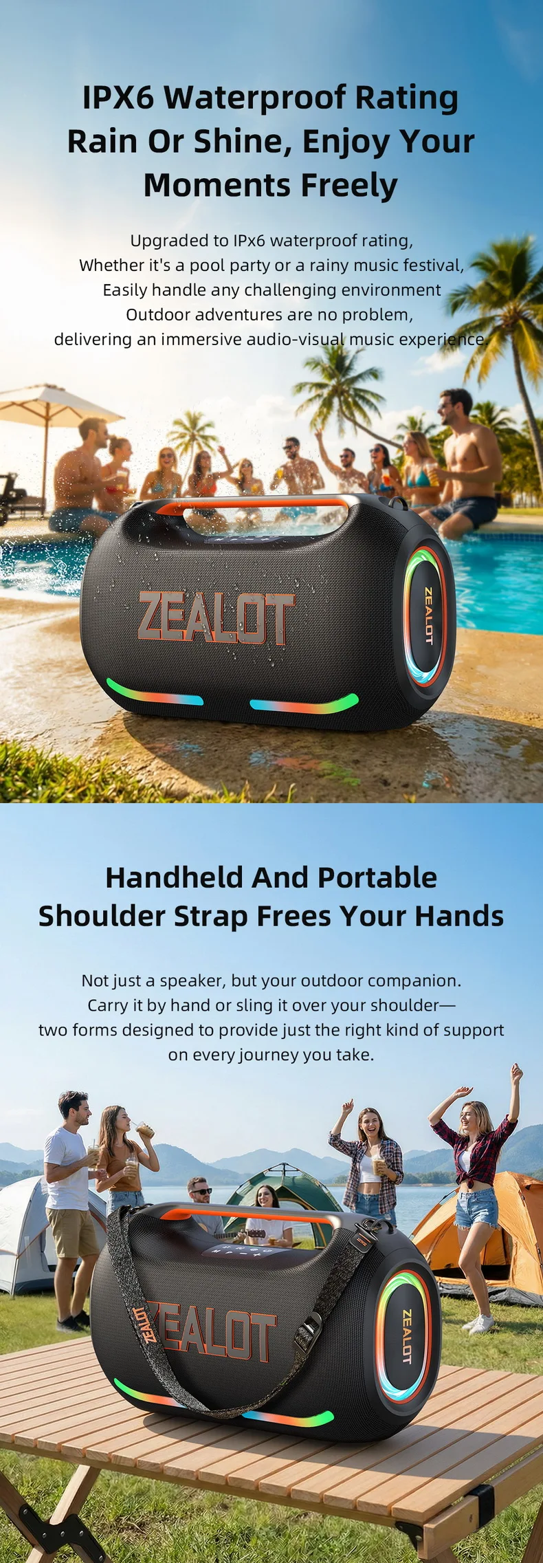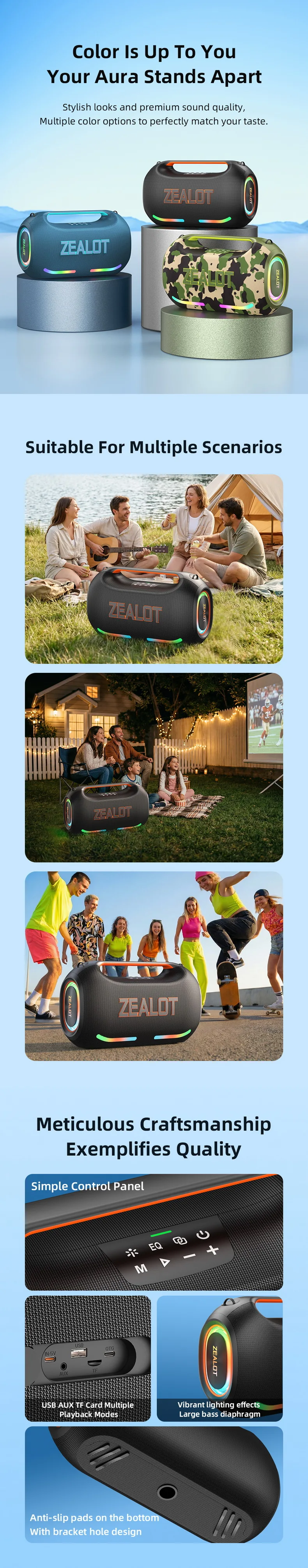 【🎁Clearance price🎁】ZEALOT PT21 Portable Speakers Wireless Deep Bass Boombox Big Party Boombox Wireless Speaker Fast Charging