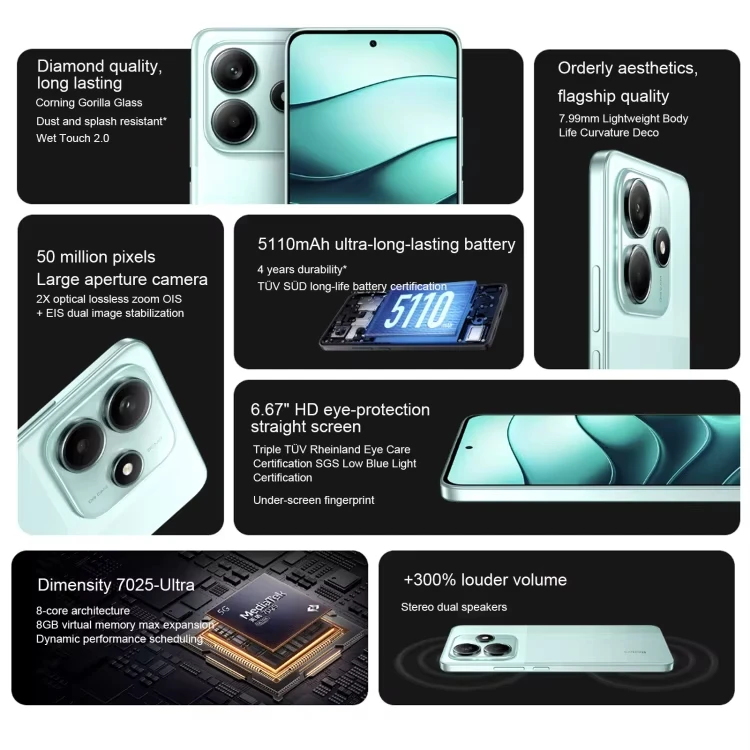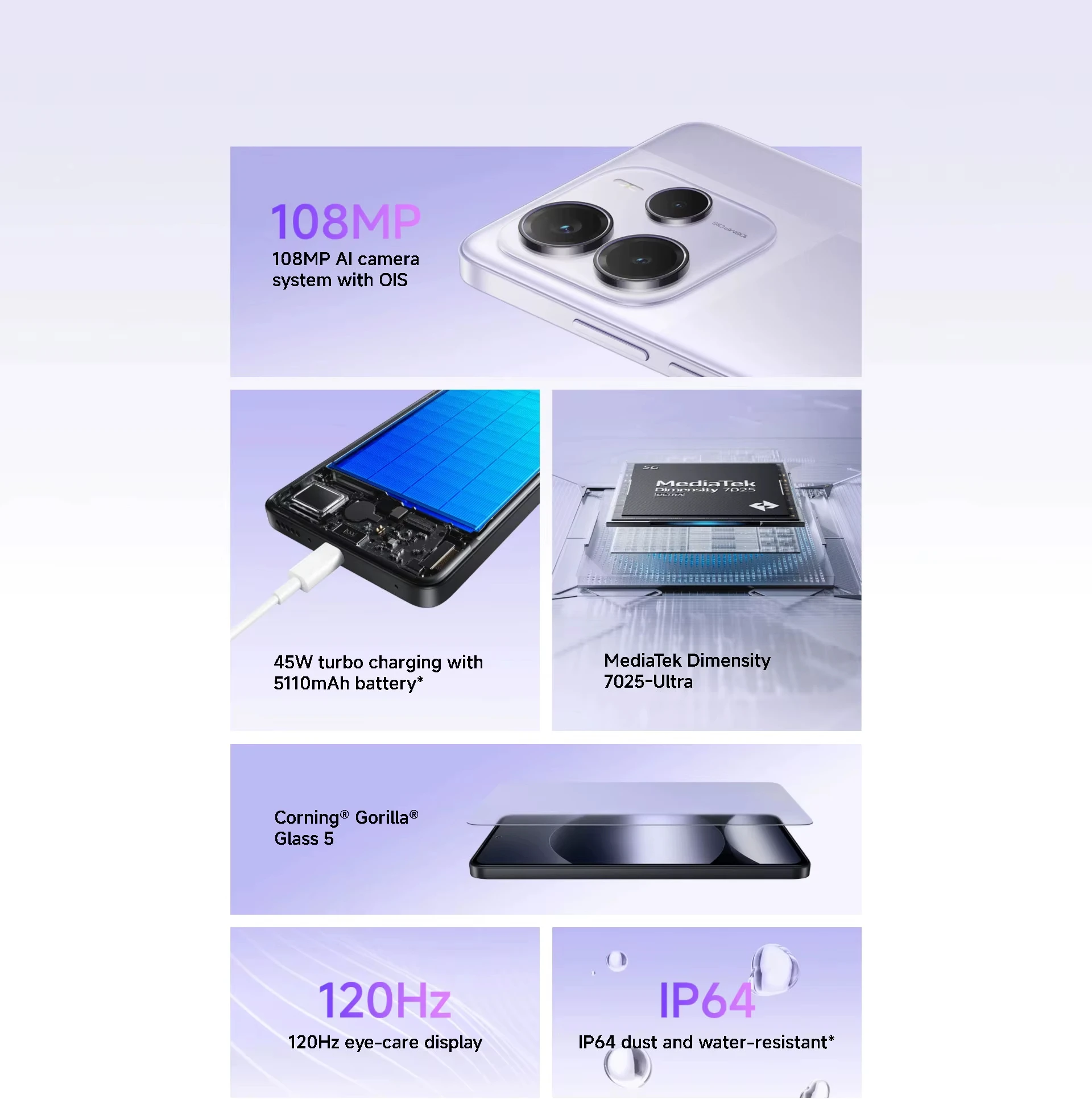 Xiaomi Redmi Note 14 5G Mobile Phone with 108MP 45W 120Hz IP64 MediaTek Dimensity 7025-Ultra Octa Core CPU LTE